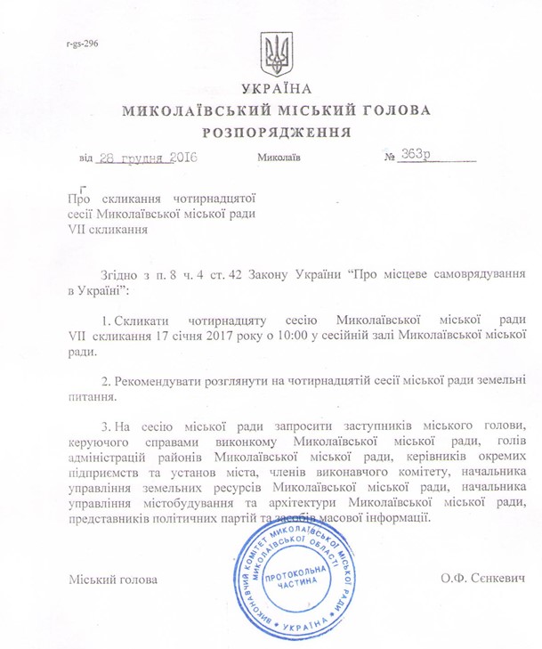 Очередная, 14 сессия Николаевского горсовета состоится во вторник, 17 января. Соответствующее распоряжение №363р о созыве сессии подписал городской голова Николаева Александр Сенкевич 28 декабря 2016 года.
