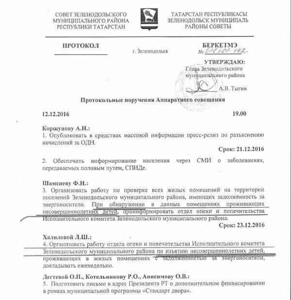 — Организовать работу отдела опеки и попечительства… по изъятию несовершеннолетних детей, проживающих в жилых помещениях с задолженностью за энергоносители, - говорится в документе.
