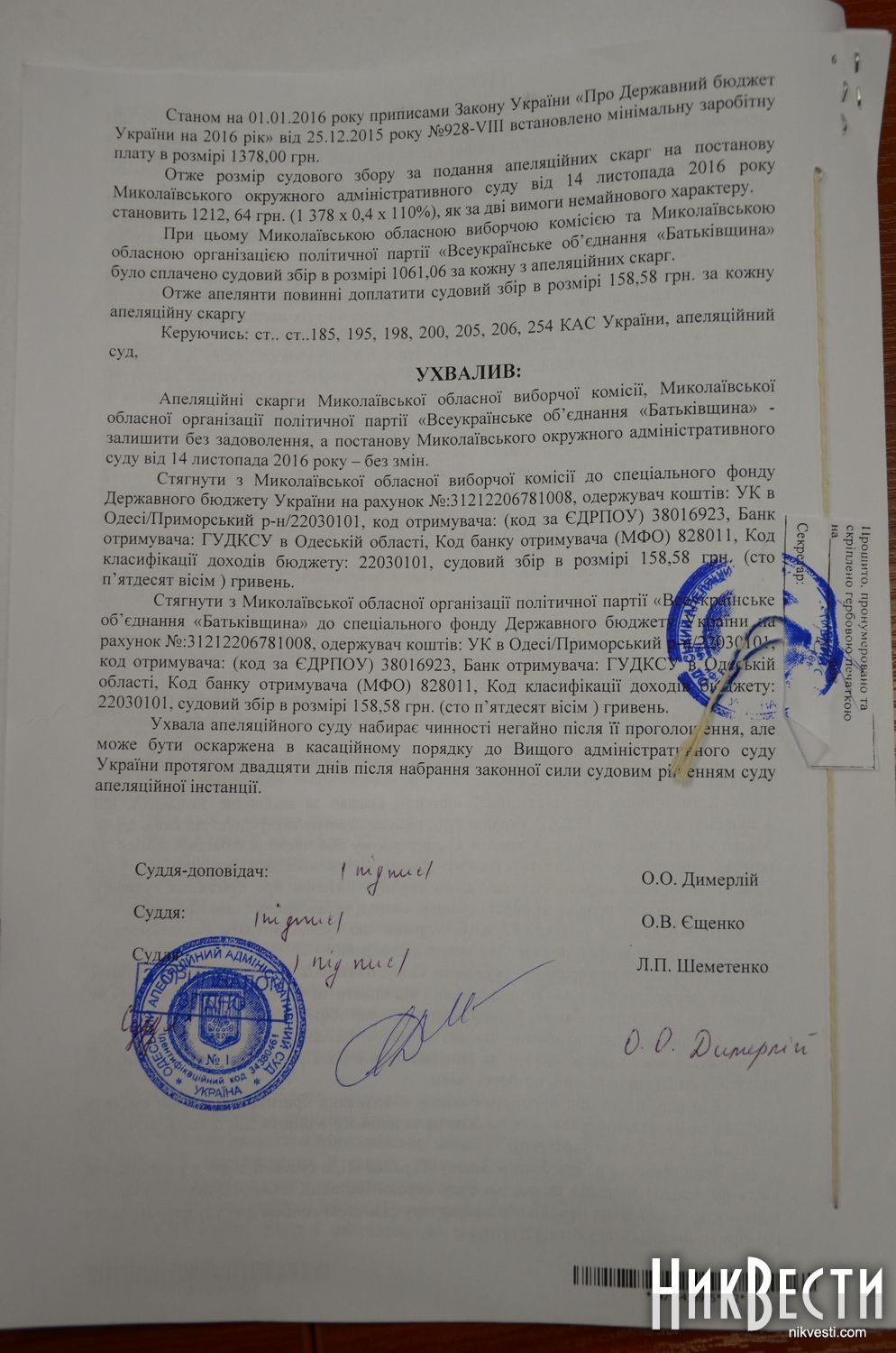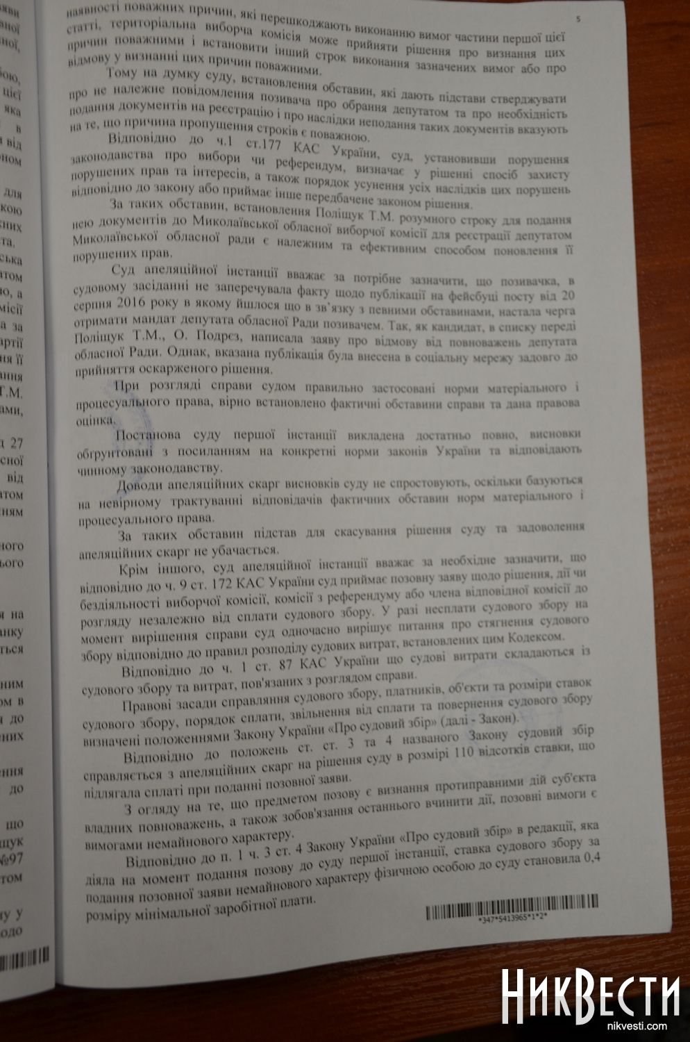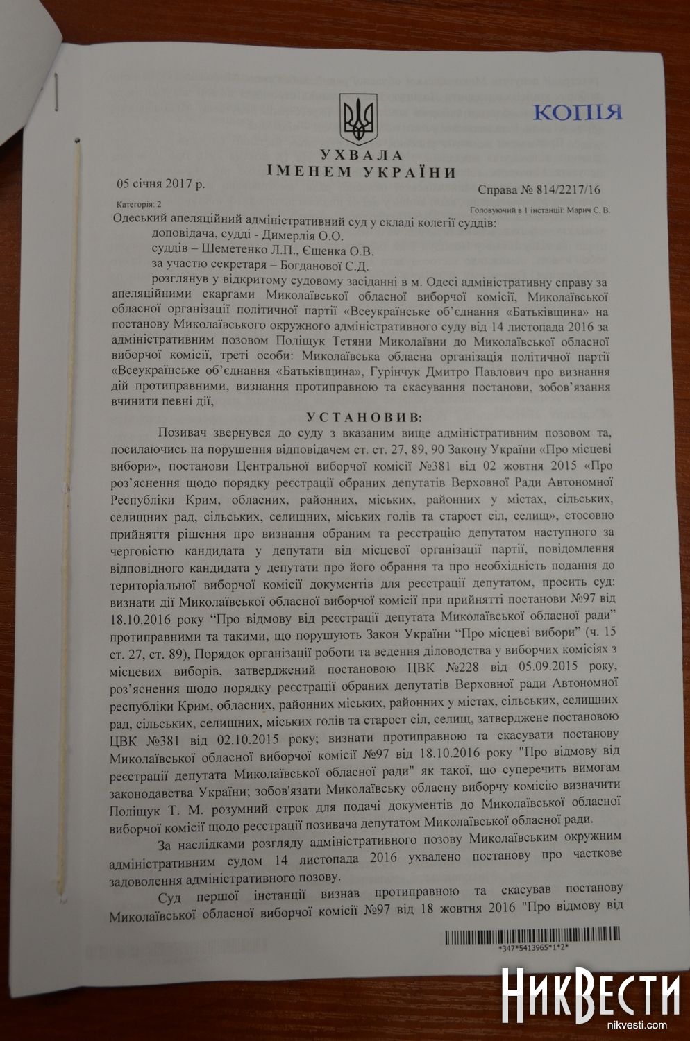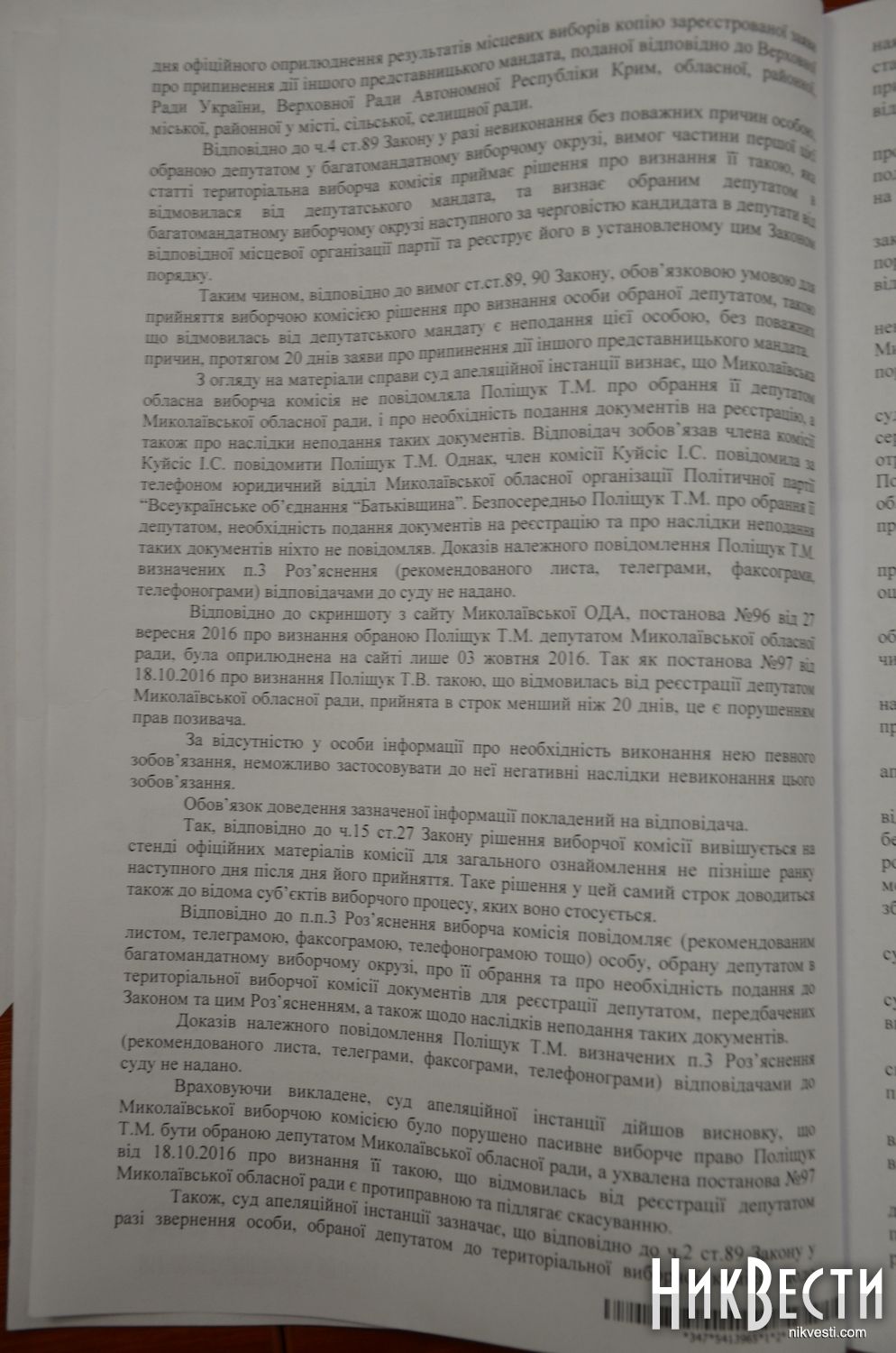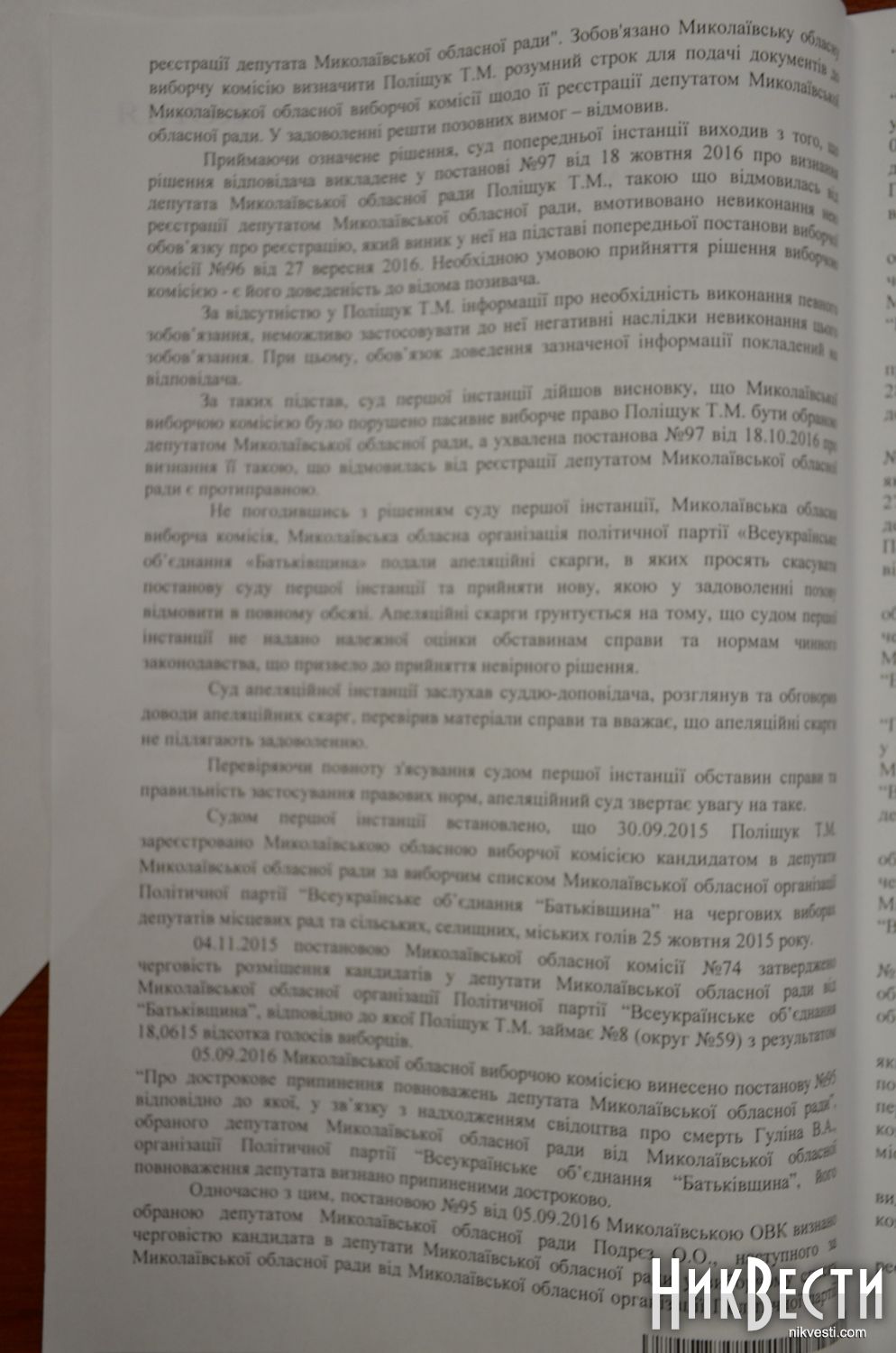 На это члены облизбиркома обратили внимание, что в порядке ведения делопроизводства указано, что документы и обращения областная избирательная комиссия получает по почте, лично или через уполномоченного представителя. А поскольку Татьяна Полищук не является уполномоченным представителем Одесского апелляционного административного суда, то комиссия не может у нее принять официальный документ от имени суда.