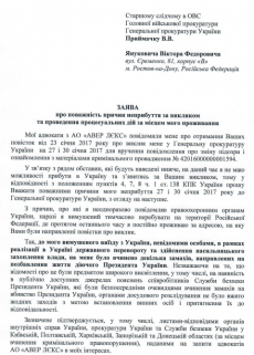 Об этом говорится в заявлении, которое его адвокат Виталий Сердюк принес в Генеральную прокуратуру Украины в понедельник, 30 января, передает Украинская правда.