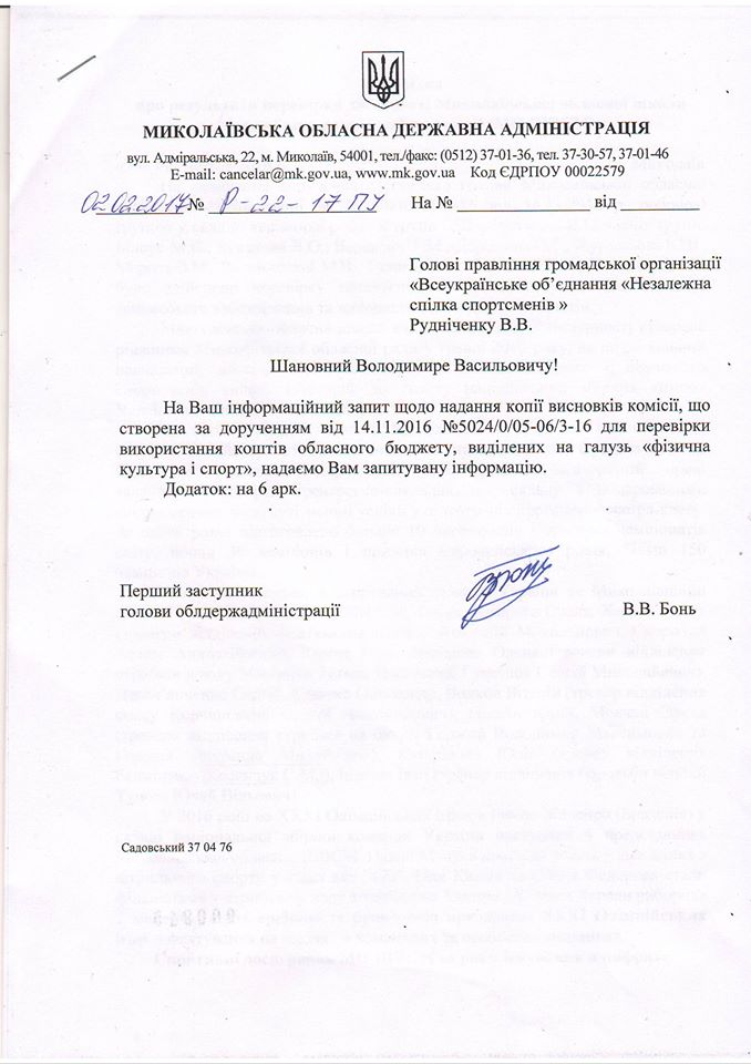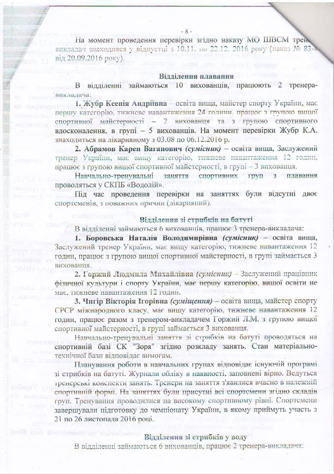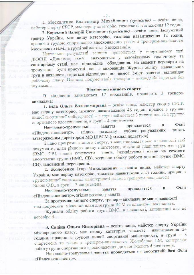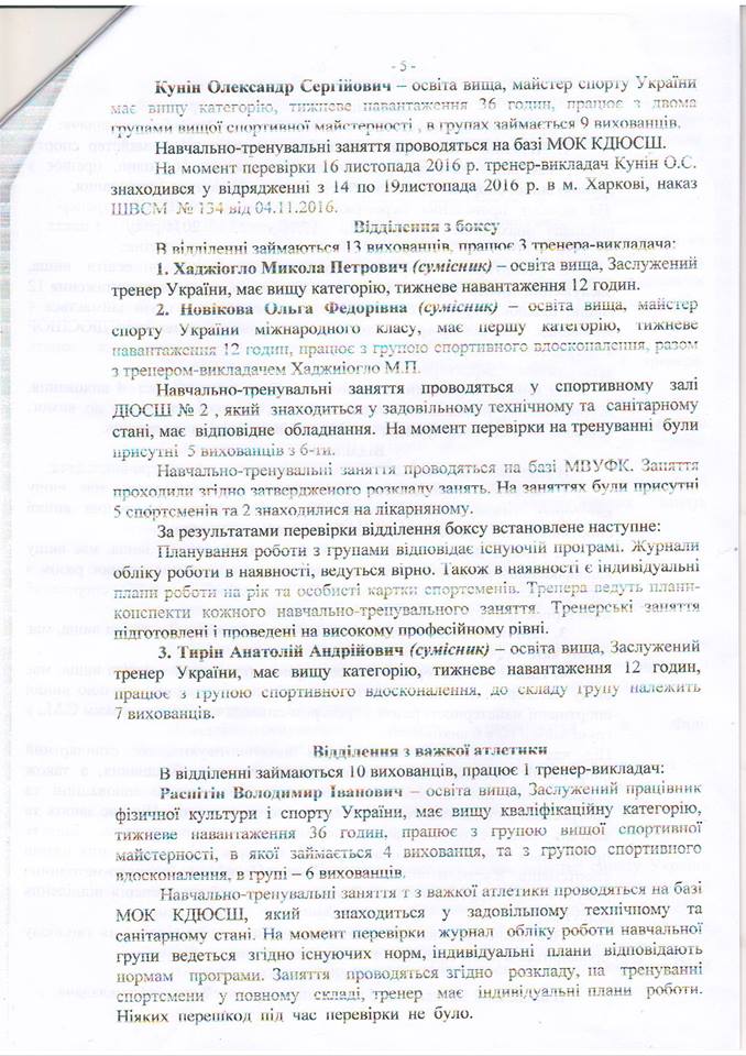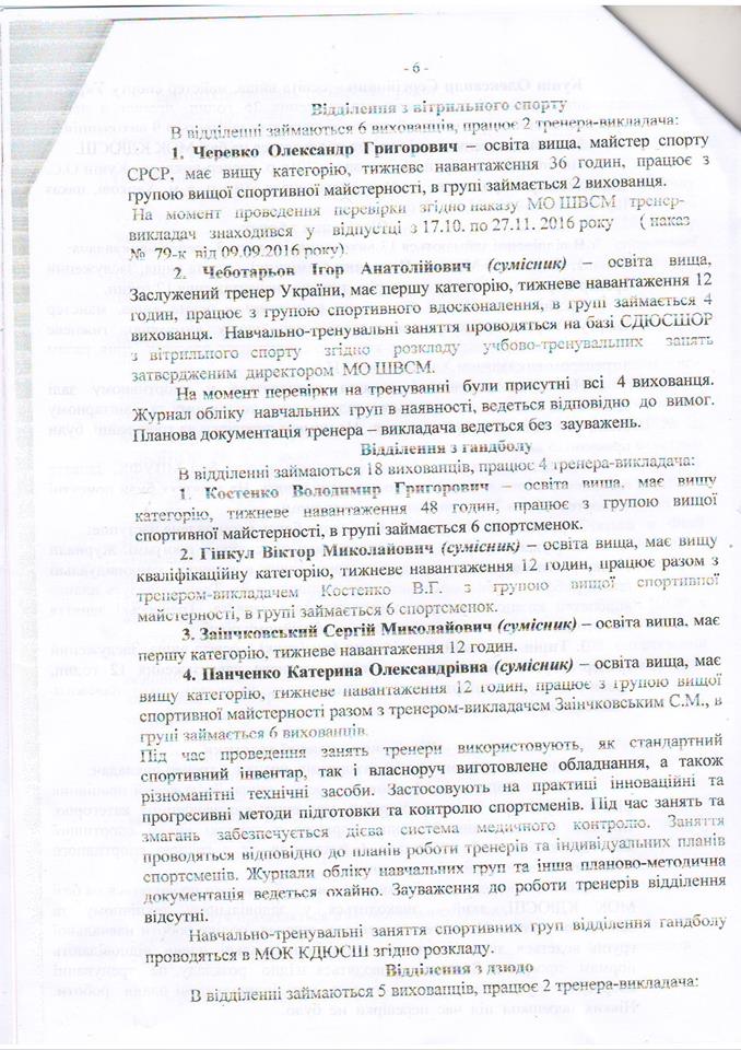 Владимир Рудниченко приводит в пример справку о результатах деятельности Николаевской областной школы высшего спортивного мастерства, которую составили после поручения Алексея Савченко проверить использование бюджетных средств, выделенных на спорт. Указывается, что реальная картина не соответствует тому, что чиновники показали в документе.
