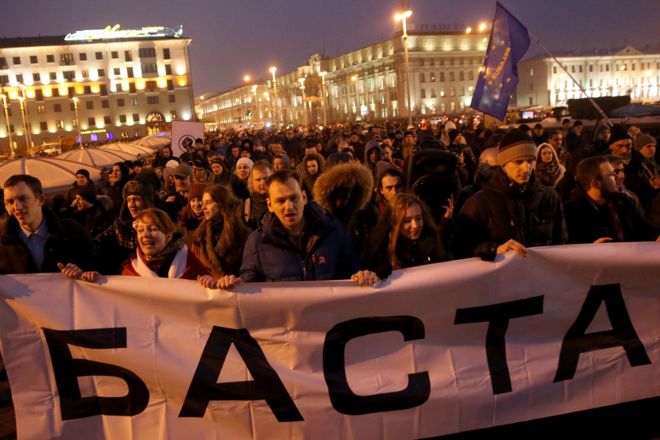 Лидеры марша пообещали властям общереспубликанскую акцию протеста, если президент Беларуси не отменит свой декрет «О предупреждении социального иждивенчества», который неофициально называют «декретом о тунеядстве».