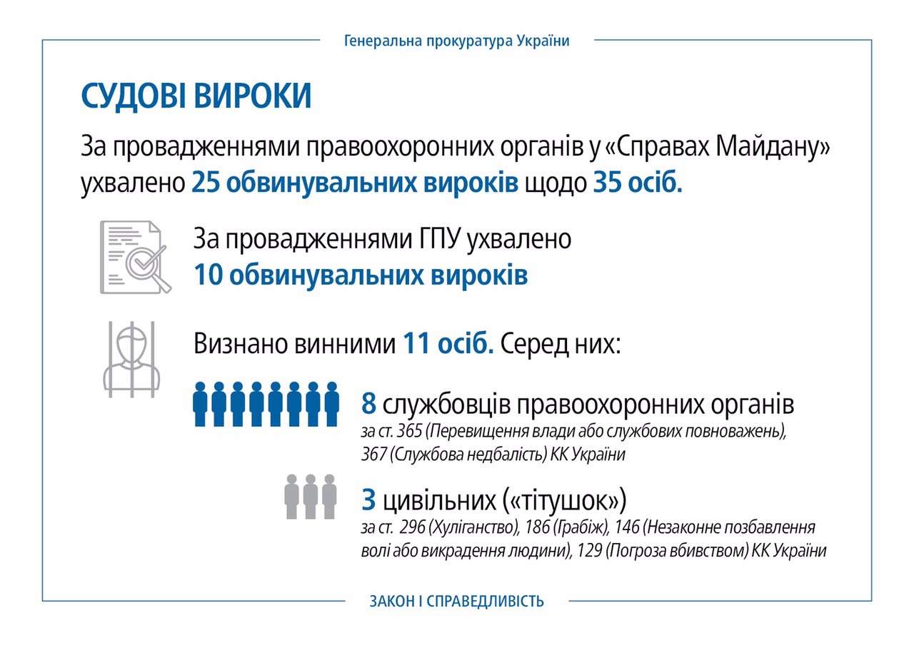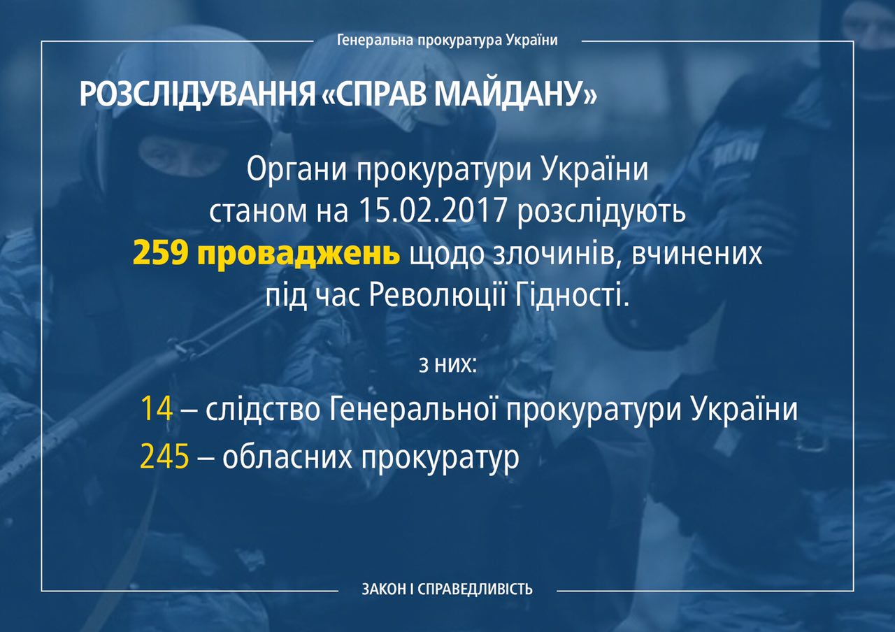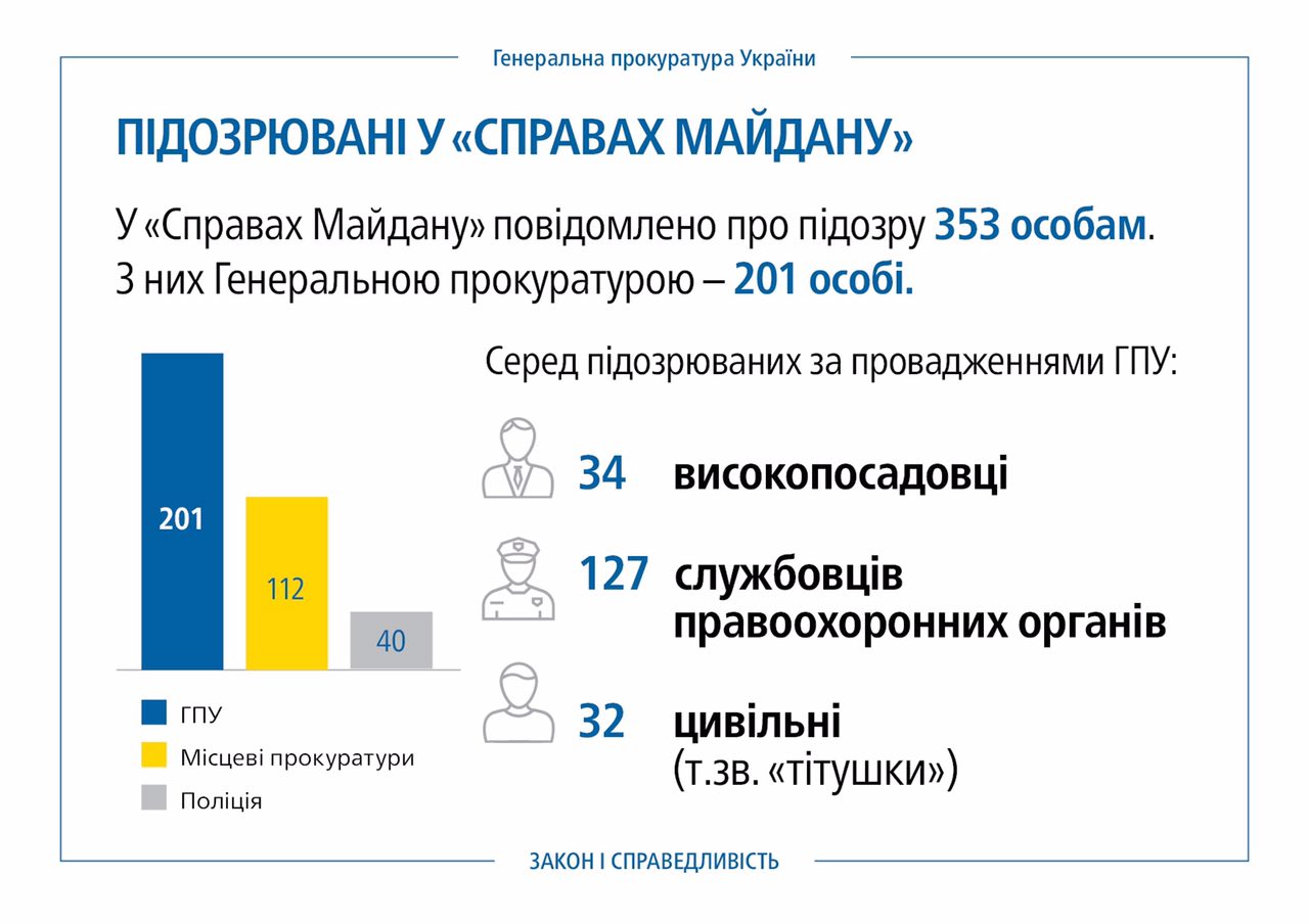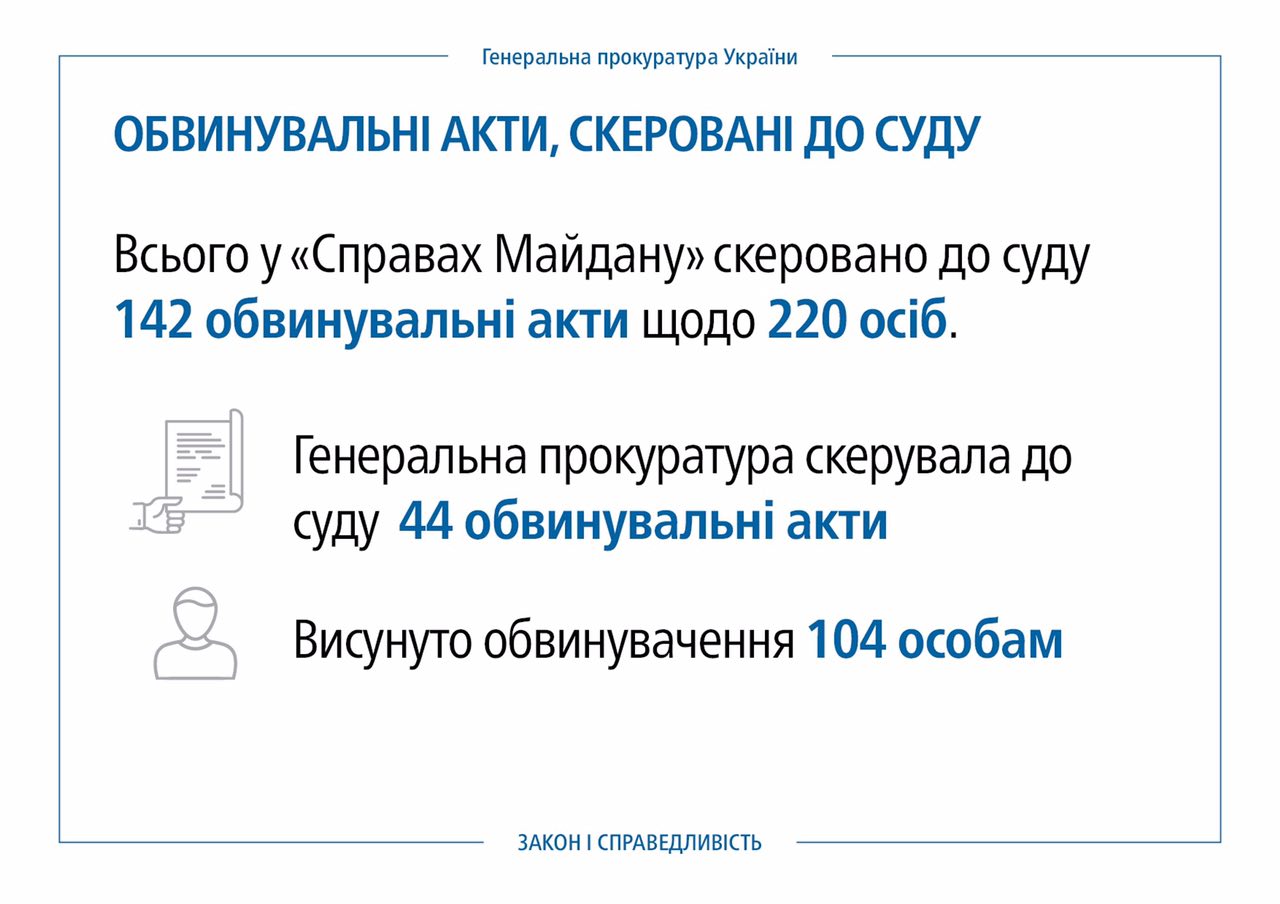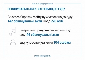 Юрий Луценко отметил, что обвинительные акты в отношении 220 человек по делам Майдана направлены в суд. Генпрокурор заверил, что «расследование дел Майдана – самая важная часть работы ГПУ».