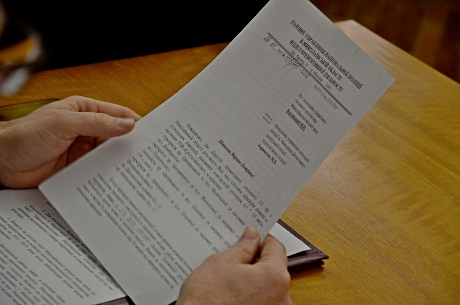 Тут член исполкома Андрей Ермолаев озвучил требование полиции, которое содержится в письме главного управления Национальной полиции в Николаевской области исполняющей обязанности начальника управления градостроительства и архитектуры Николаевского городского совета Марине Калмыковой от 26 апреля 2016 года