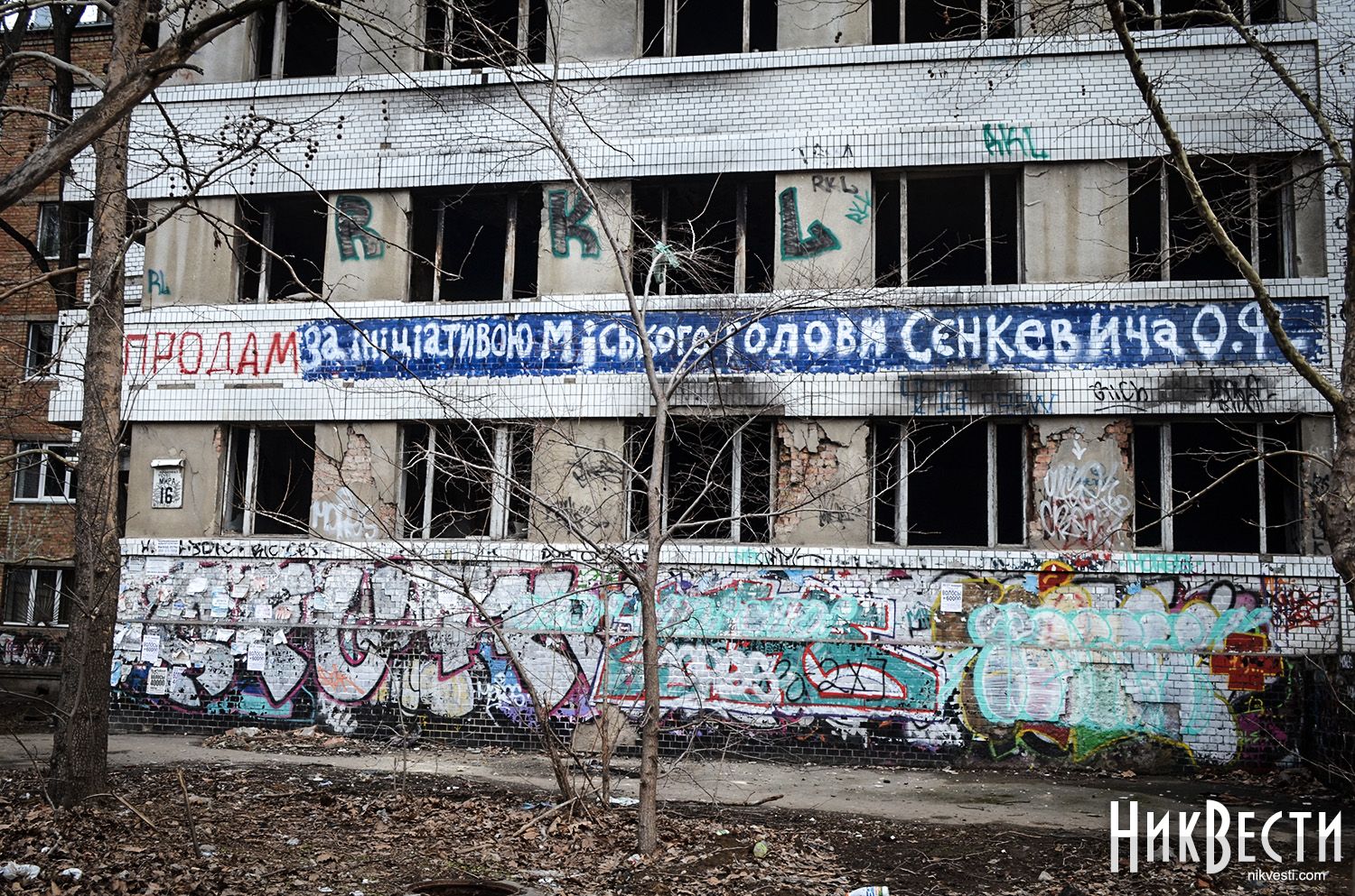 Еще сегодня утром Николаевский городской голова Александр Сенкевич сказал, что пока не знает, как реагировать на то, что прошлой ночью неизвестные написали на заброшенном здании по проспекту Мира.