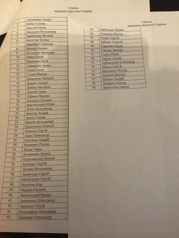 Председатель Комитета Верховной Рады по вопросам свободы слова и информационной политики, член фракции «Народный фронт» Виктория Сюмар опубликовала список народных депутатов, которые регулярно посещают Москву в условиях войны с Россией.