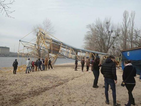 В Киеве в субботу, 4 марта, со скандалом демонтировали знаменитый столичный аттракцион - троллей через Днепр.