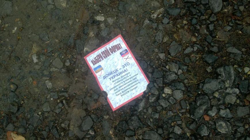 Как сообщает Сайт города Донецка, фотографию листовки нашел на улице Летчиков в Петровском районе местный житель.
