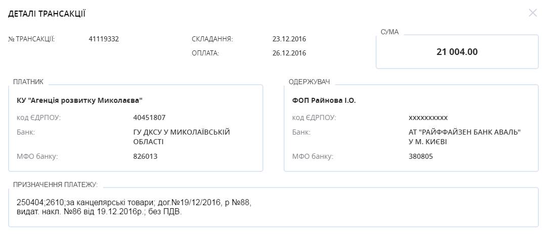 — Коммунальное учреждение в декабре закупило канцелярии на 21 тысячу гривен и офисной бумаги на 16 тысяч гривен (в ноябре) у одного и того же ФЛП Райнова, - написала Александра Вязникова, опубликовав снимки транзакций.
