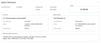 Директор «Агентства развития Николаева» Василий Гошовский заявил, что коммунальное учреждение не тратило бюджетные средства для закупки канцелярии для своей работы, однако в итоге это оказалось неправдой.