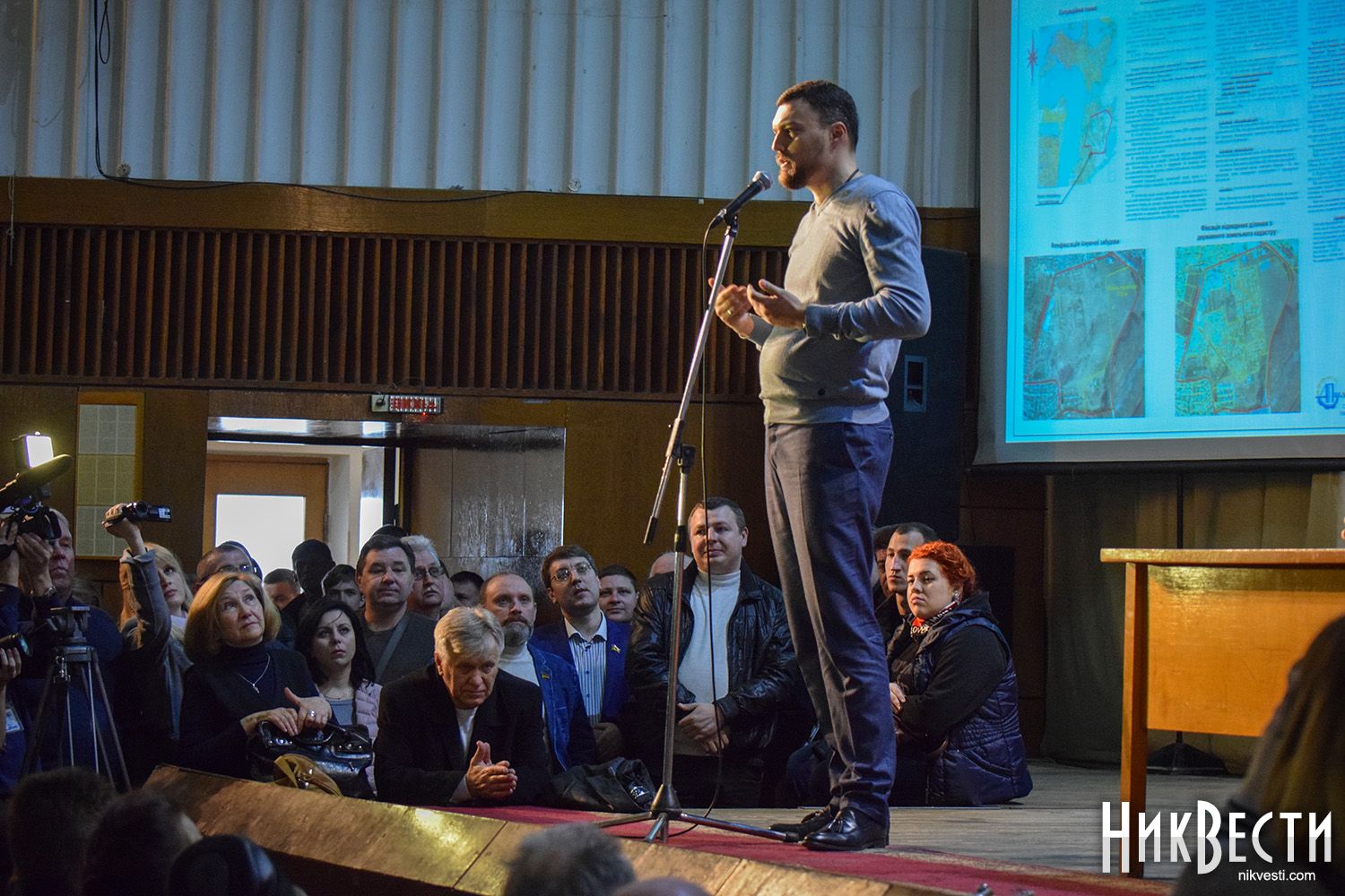 В субботу, 18 марта, во Дворце культуры учащихся глава фракции «Оппозиционный блок» в Николаевском горсовете Игорь Дятлов со сцены зачитал строки из песни группы «Чайф» под названием «Не спеши», призывая городские власти отказаться от идеи строить новое кладбище в микрорайоне Кульбакино.