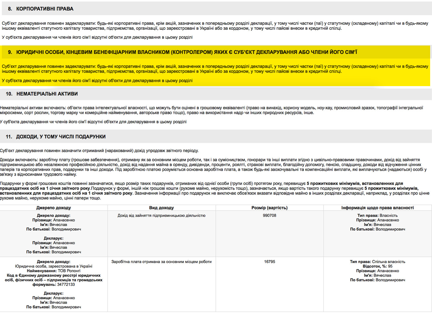 — Предприятие ООО «Роппонги», конечным бенефициаром которого я являюсь, осуществляет операционную деятельность. Конечным бенефициаром предприятия «Роппонги» я являюсь, 95% собственником, и, соответственно, это указано в моей декларации. Я заполнял декларацию, на 100% знаю, - сказал Вячеслав Апанасенко.
