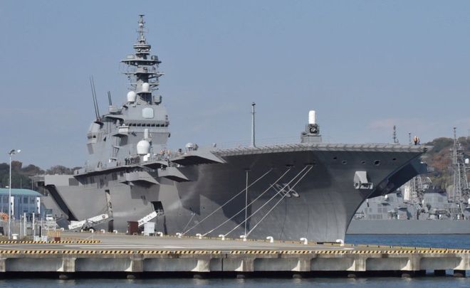 Крупнейший корабль морских сил самообороны Японии будет охранять американские суда снабжения, которые сопровождают авианосец «Карл Винсон» в походе к Корейскому полуострову.