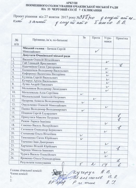 Из 26 депутатов 16 проголосовало за увольнение Гордея Белова, 6 «воздержались». Городской голова Очакова Сергей Бычков голосовал против увольнения своего заместителя.