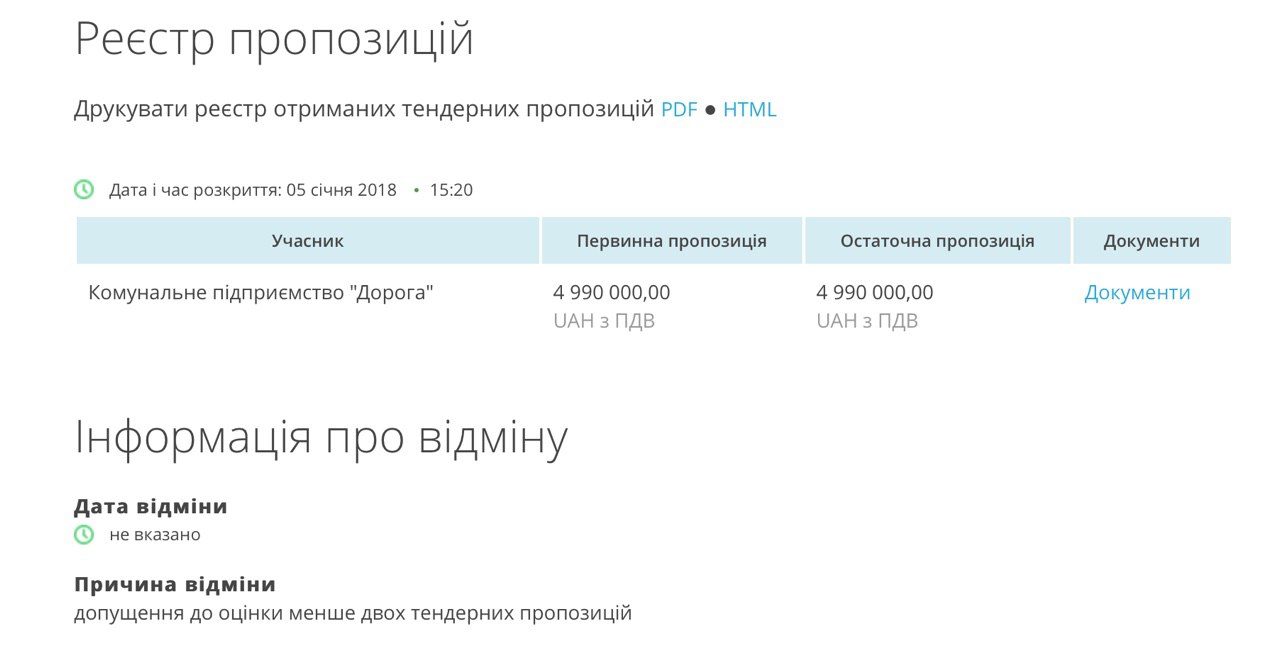 Об этом сообщается в системе электронных закупок «Prozorro».