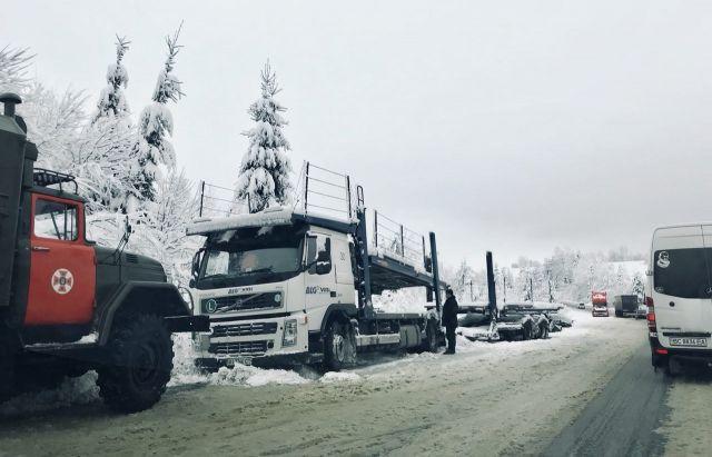 В воскресенье, 4 февраля, из-за ухудшения погодных условий на перевалах Закарпатья образовались километровые пробки.