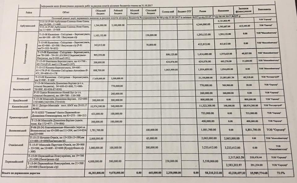 Депутат Николаевского областного совета Вадим Олабин заявил, что облгосадминистрация намерена направить на один район почти 150 миллионов гривен, выделенных на содержание и развитие дорог и дорожной инфраструктуры области.