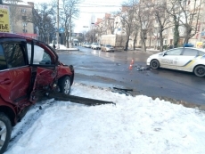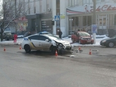 У Варваровского моста «Ниссан» столкнулся с полицейским «Приусом»