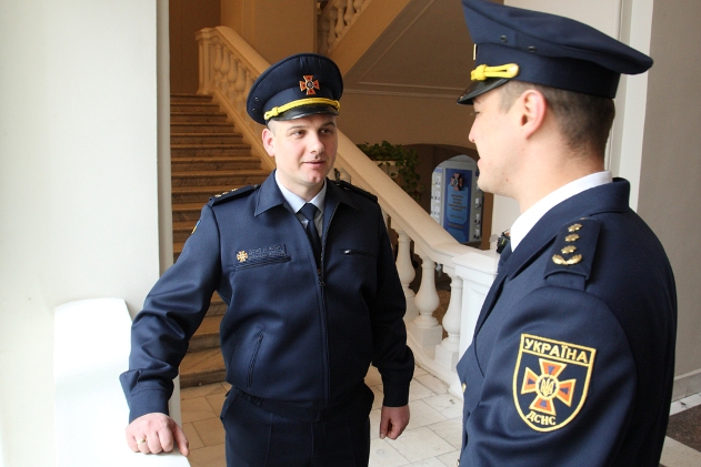 Для украинских спасателей утеплят куртки темно-синего цвета из плащевой ткани, кителя, свитера, полухлопчатобумажные брюки, рубашки голубого и белого цвета и плащи-накидки.