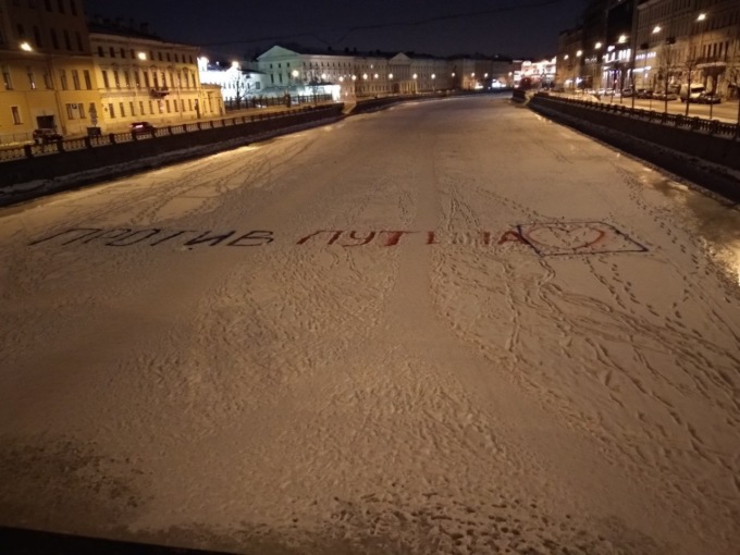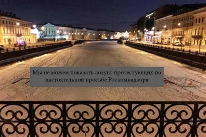 Роскомнадзор потребовал убрать из публикаций фотографию с надписью «Против Путина». Надпись на льду Фонтанки в Петербурге сделали волонтеры штаба кандидата в президенты Ксении Собчак.