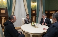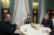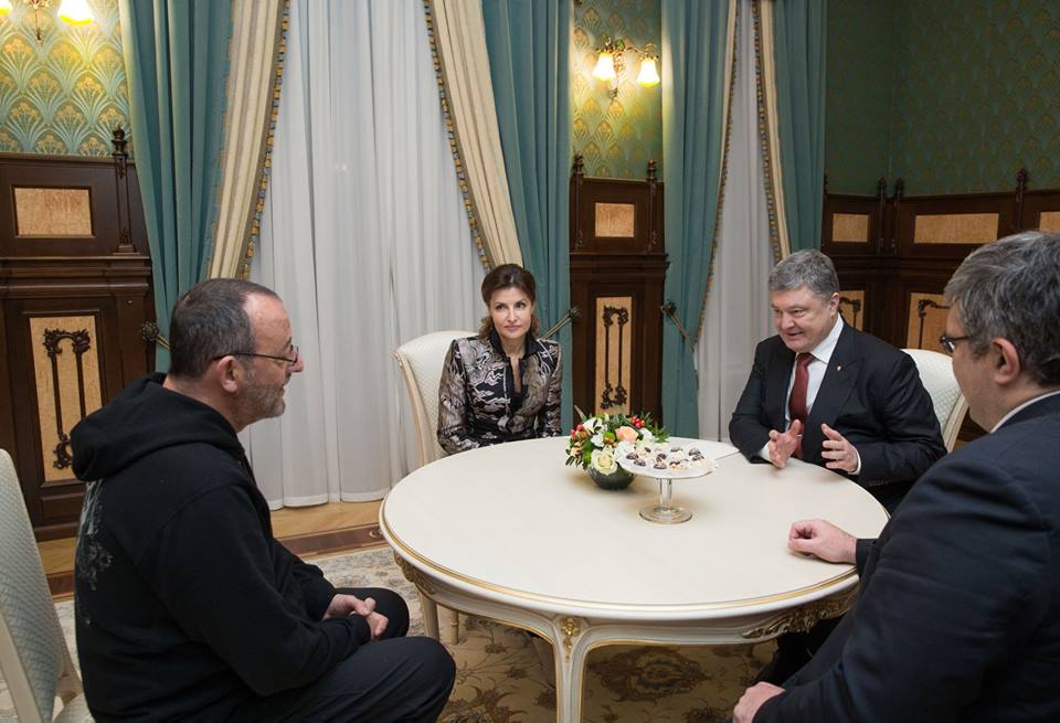 Президент Петр Порошенко вместе с супругой Мариной провел встречу с известным французским актером Жаном Рено, который участвует в съемках украинско-французского фильма "Последний шаг".