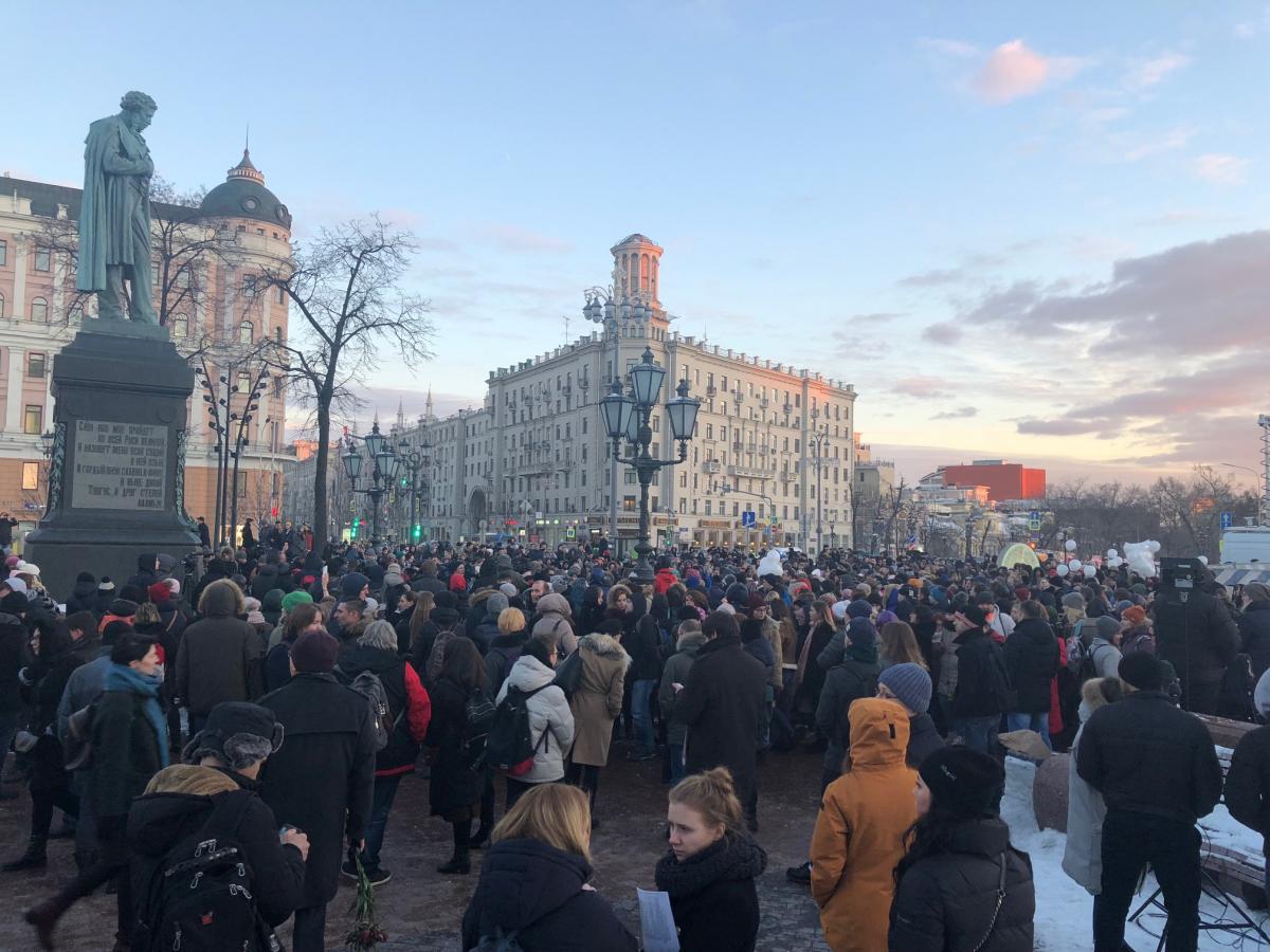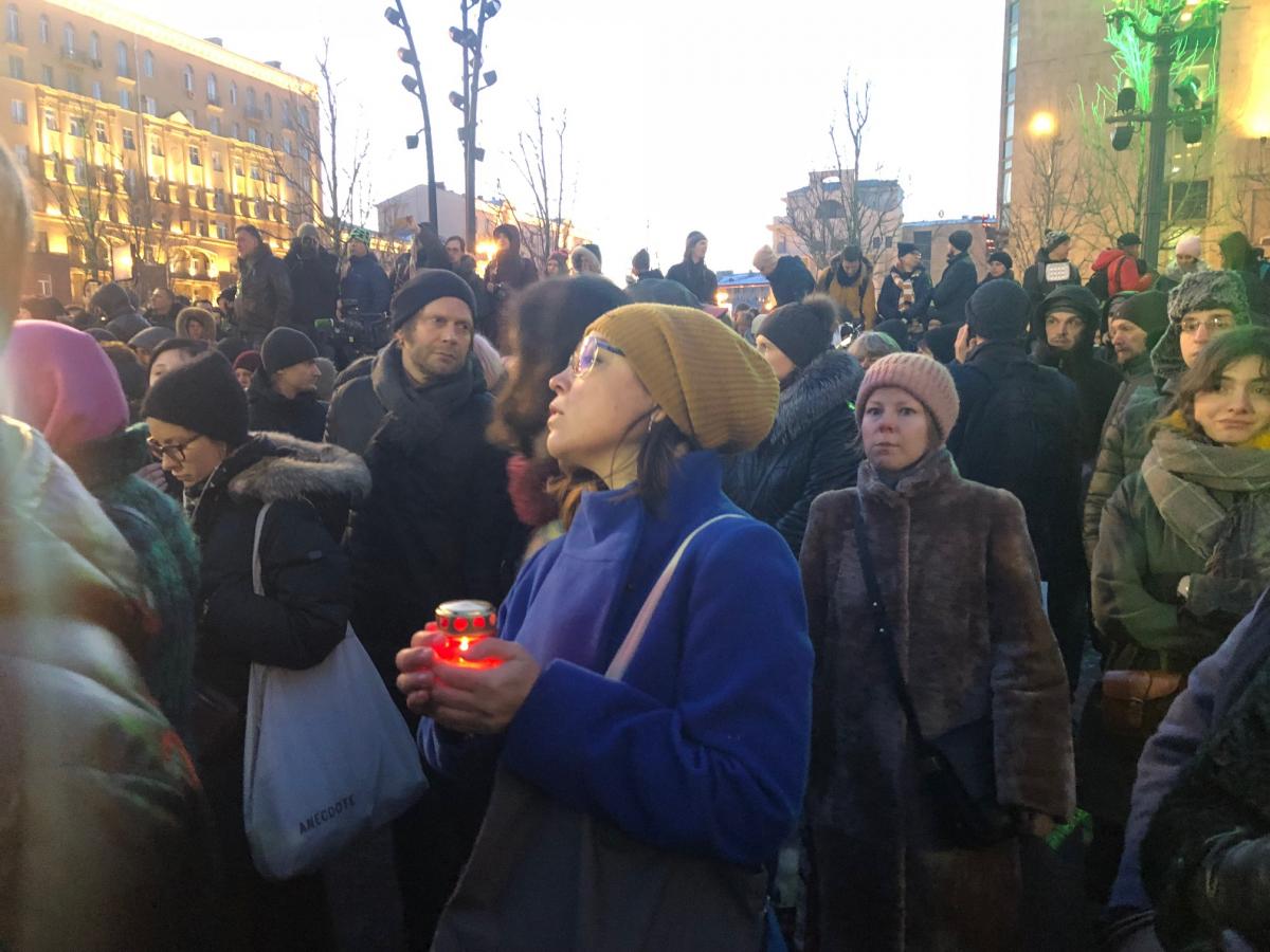 Как сообщается, пришедшие на мероприятие соорудили народный мемориал у подножия памятника Пушкину. Из-за большого количества людей на площади участники передавали друг другу цветы, мягкие игрушки и свечи.