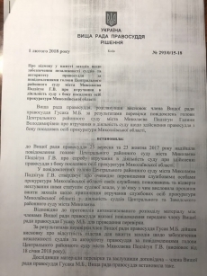 Однако в Высшем совете правосудия не согласились с главой Центрального районного суда Николаева. Там не усмотрели в действиях прокуратуры давления на суд, а только лишь выполнение их служебных обязанностей в рамках предоставленных законом полномочий.