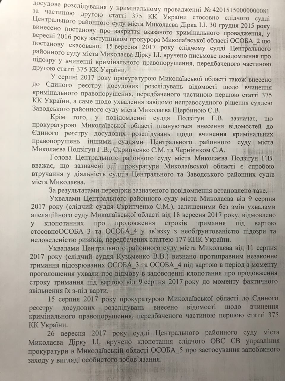 Тогда заявлялось, что правоохранители хотели изъять ряд документов, находящихся в материалах уголовного производства, которое суд рассматривал по существу. Указанные документы сотрудники прокуратуры хотели получить в рамках досудебного расследования в другом уголовном производстве. Галина Подзигун расценила это как попытку сбора информации о деятельности судей и сотрудников аппарата для дальнейшего использования ее с целью дискредитации суда или влияния на его беспристрастность.