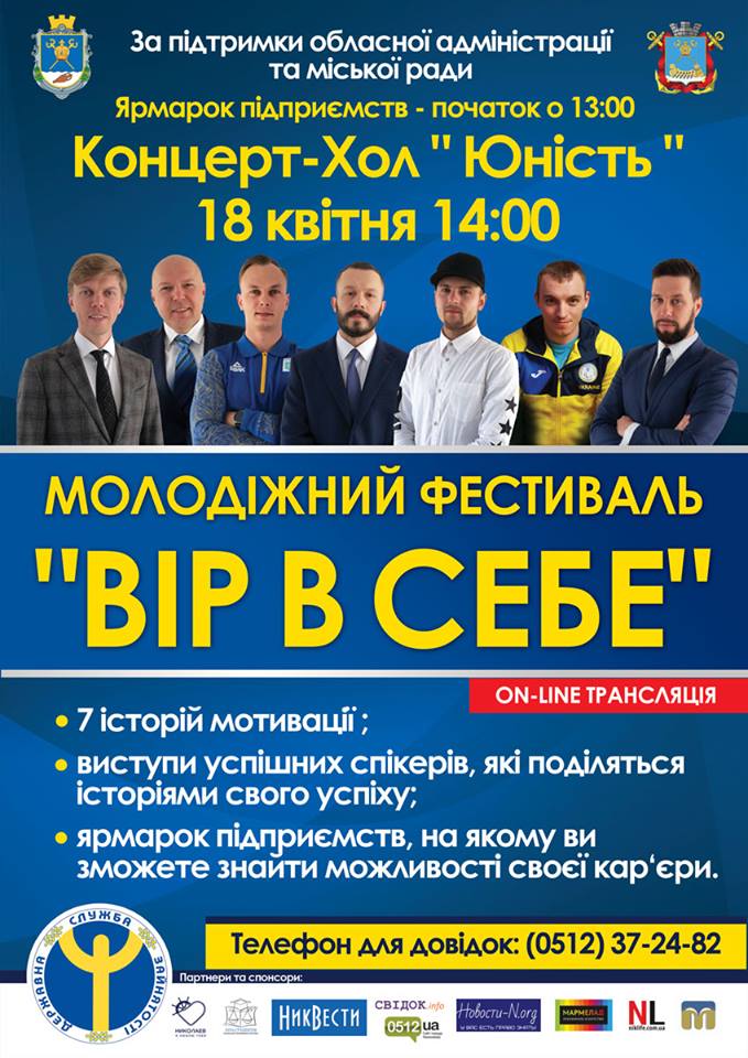 18 апреля в Николаеве пройдет молодежный фестиваль «Верь в себя», на котором будут выступать олимпийские чемпионы, а также бизнесмены.