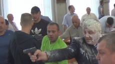 В Никополе на сессии горсовета произошла стрельба: мэра облили зеленкой, депутата кефиром