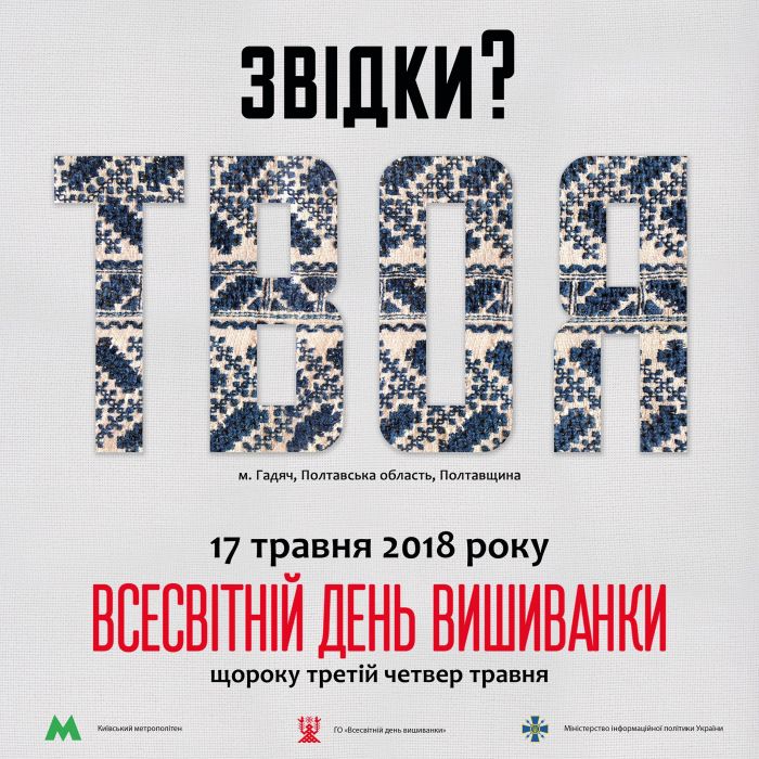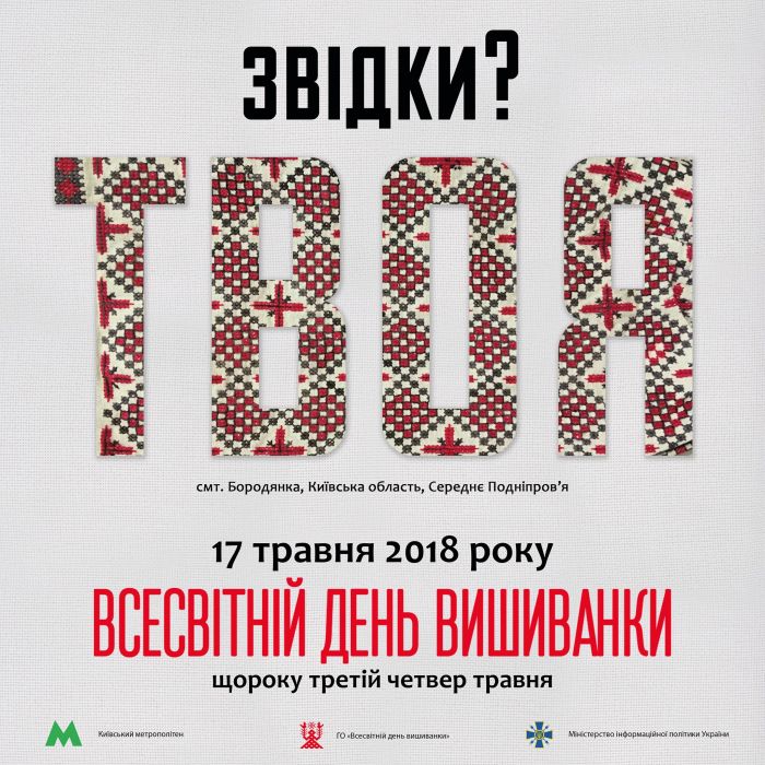 — Ко Всемирному дню вышиванки (17 мая) на синей линии подземки начал курсировать тематический поезд. В вагонах размещены постеры "Откуда твоя?" с орнаментами вышивок разных регионов Украины, - говорится в сообщении метрополитена.