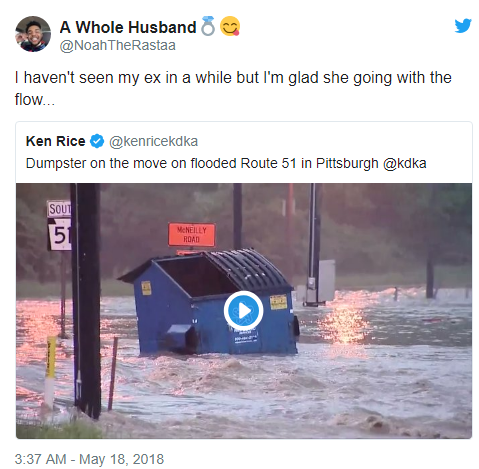 Dumpster on the move on flooded Route 51 in Pittsburgh @kdka pic.twitter.com/BYeVpUhvcl