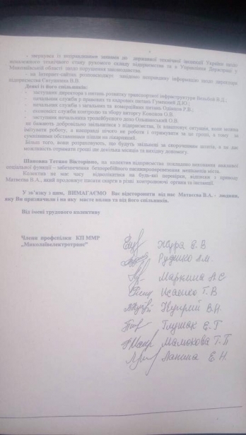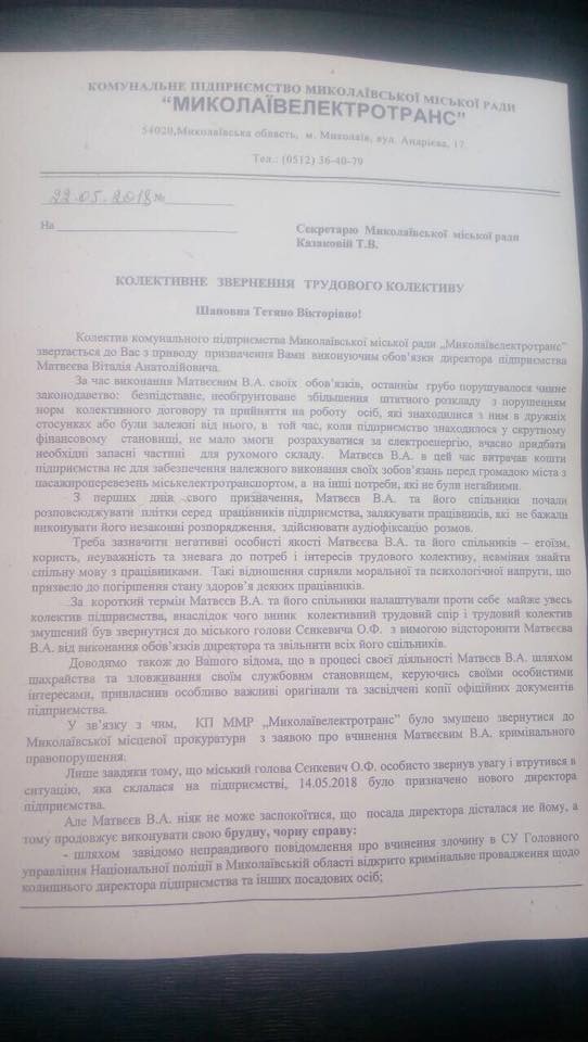 Работники «Николаевэлектротранса» жалуются, что экс-руководитель Матвеев продолжает выполнять свое «грязное и черное дело»