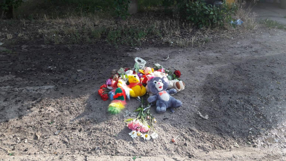 На место трагедии люди принесли игрушки и цветы.