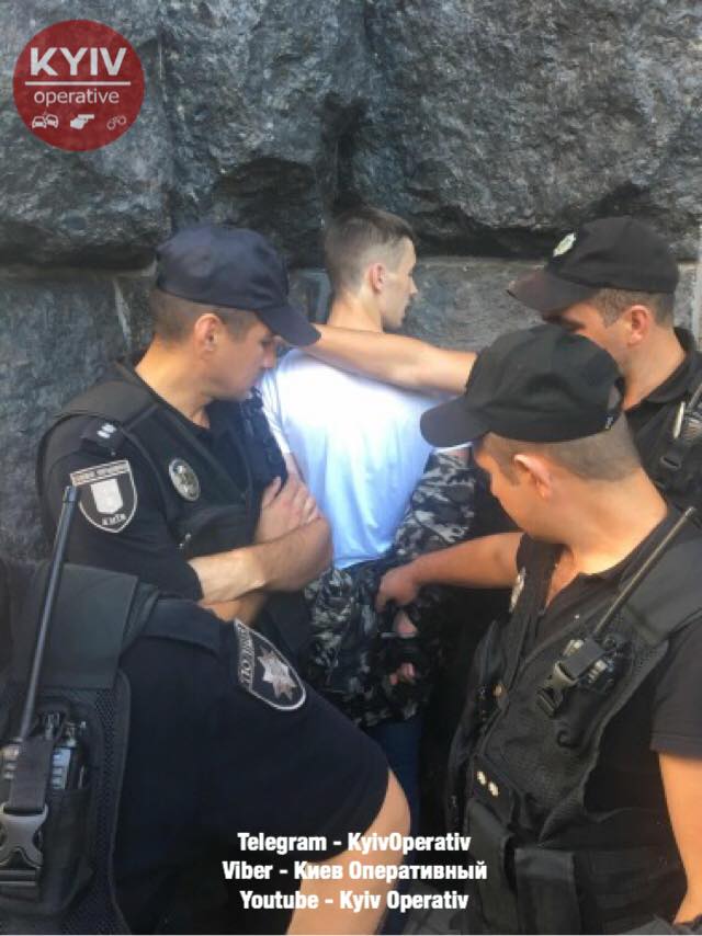 Паблик «Киев оперативный» на своей странице в Facebook сообщает, что юноша ходил с оружием центральными улицами города и кричал "Крым наш".