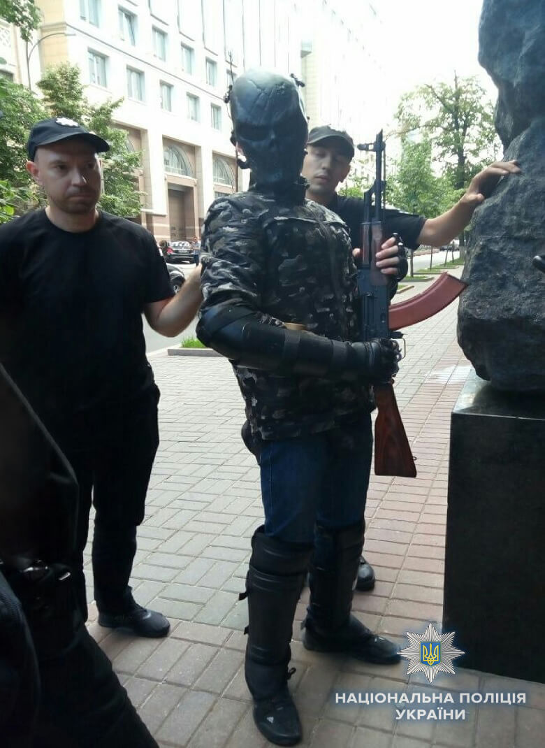 Сегодня, 19 июня, под зданием Верховной Рады правоохранители задержали молодого мужчину с автоматом Калашникова.