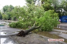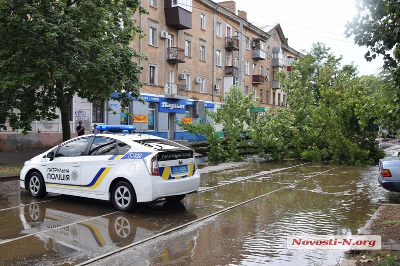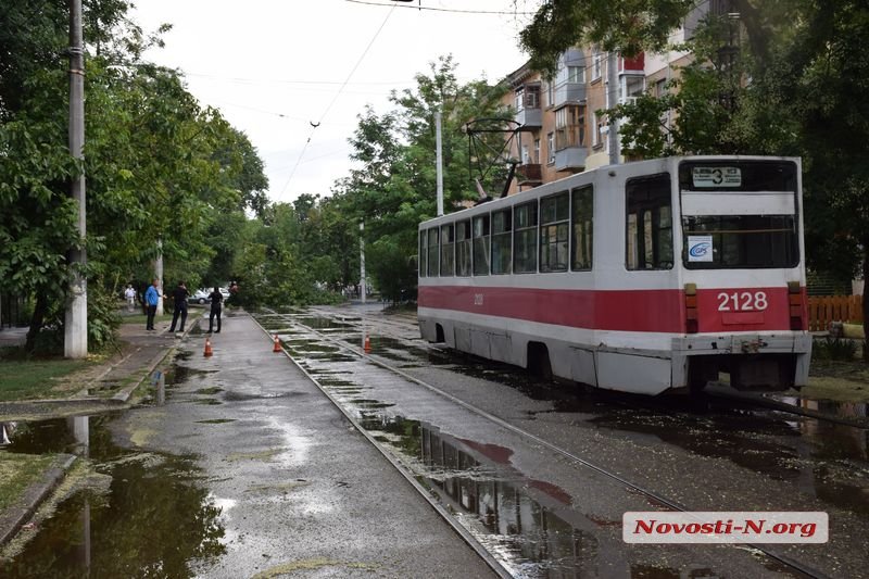 В понедельник, 23 июля, после спустившегося сильного дождя, возле пересечения улиц Потемкинской и Инженерной в городе Николаеве, на проезжую часть упал клен, который заблокировал движение трамваев.