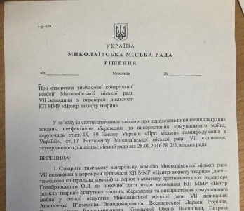 Об этом идет речь в решении о создании временной контрольной комиссии Николаевского городского совета VII созыва по проверке деятельности КП «Центр защиты животных», опубликованном на сайте мэрии.