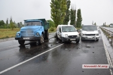 Сегодня, 25 июля, на трассе «Николаев-Ульяновка» столкнулись автомобили Mercedes Benz Vito, Ford Transit Connect, Chevrolet Aveo и самосвал ЗИЛ.