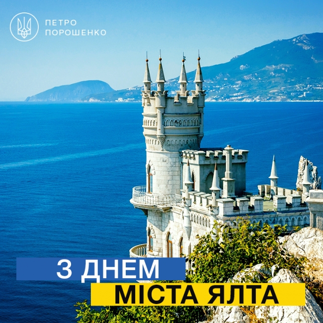 ― Волшебная Ялта - настоящая жемчужина Крыма. Как и Крым - настоящая жемчужина Украинского Государства. Уверен, что в Ялте и по всему Крыму поднимут сине-желтый флаг и будет звучать гордое «Ще не вмерли України ні слава, ні воля», - написал Петр Порошенко.