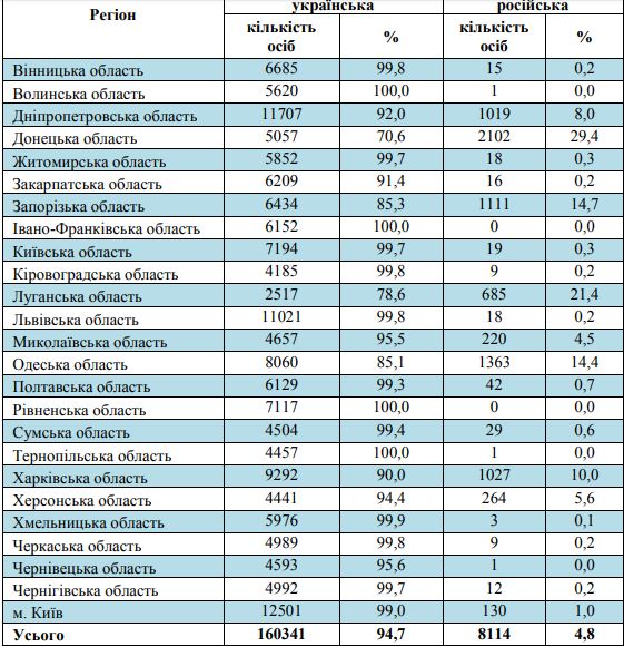 В Николаевской области только 4,5 процента детей пожелали сдавать экзамен по истории Украины на русском языке, 95% выбрали украинский язык.