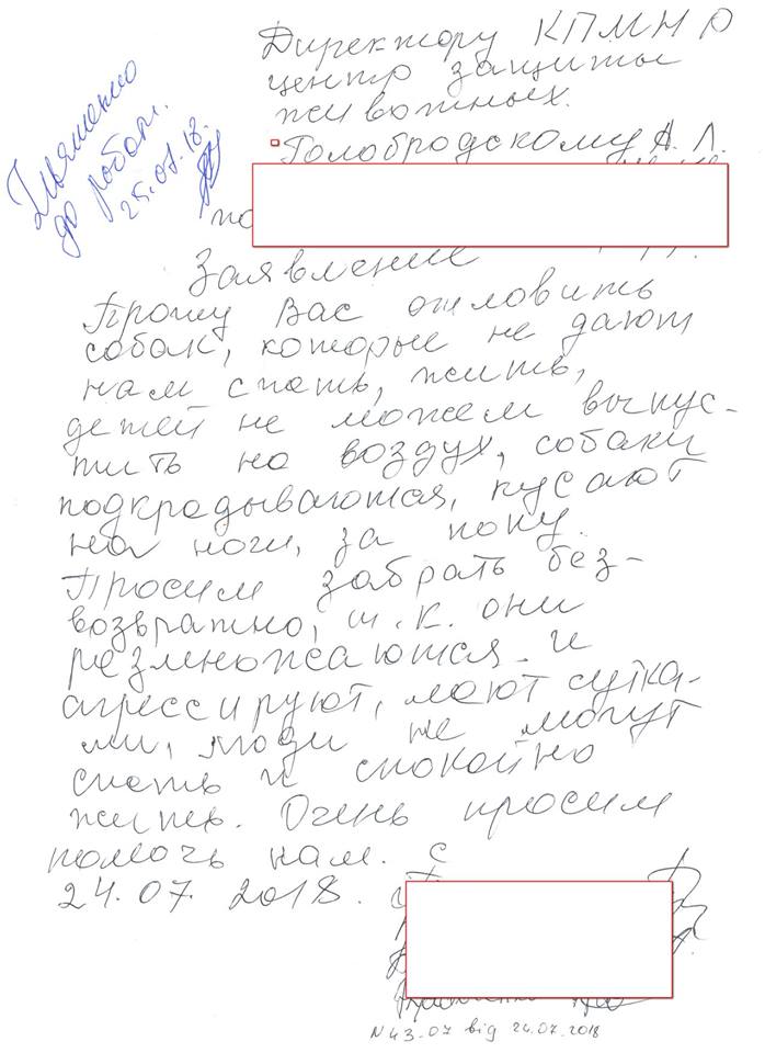 Отмечается, что в период с 1 июня по 16 августа текущего года предприятием зарегистрировано 47 письменных заявок на отлов агрессивных собак, в большинстве заявок присутствует требование выполнить безвозвратной отлов агрессивных собак. Из них от администраций предприятий и организаций - 31 заявка, от граждан - 16 заявок.