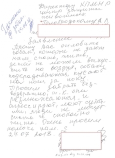 Также 24 июля зоозащитники блокировали работу коммунального предприятия «Центр защиты животных», не пускали на его территорию представителей СМИ, а также Александра Голобродского – отстраненного на время проверки директора коммунального предприятия.