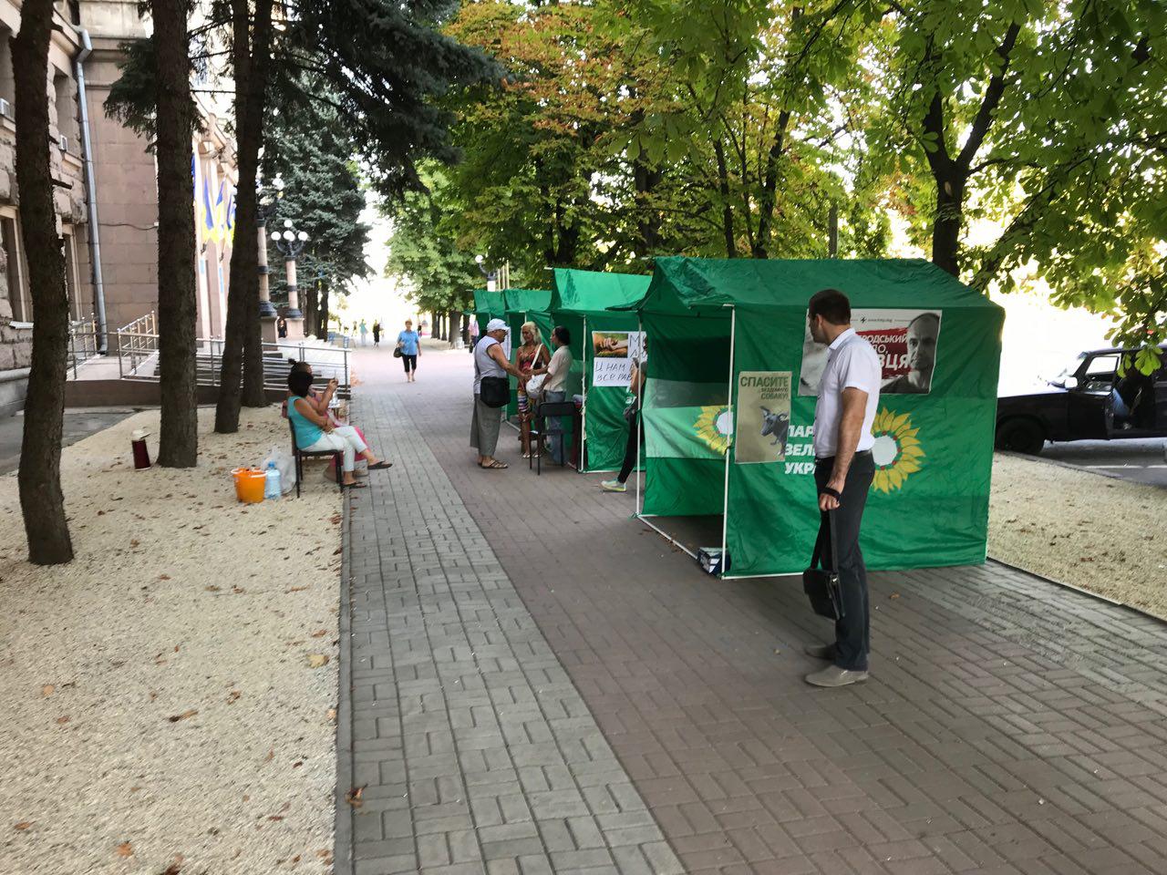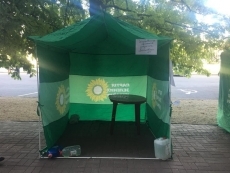 Депутат заявила, что на пешеходной зоне перед зданием городского совета депутат Лариса Веселовская установила четыре палатки, на одной из которых указано, что это – общественная приемная депутата Ларисы Веселовской.