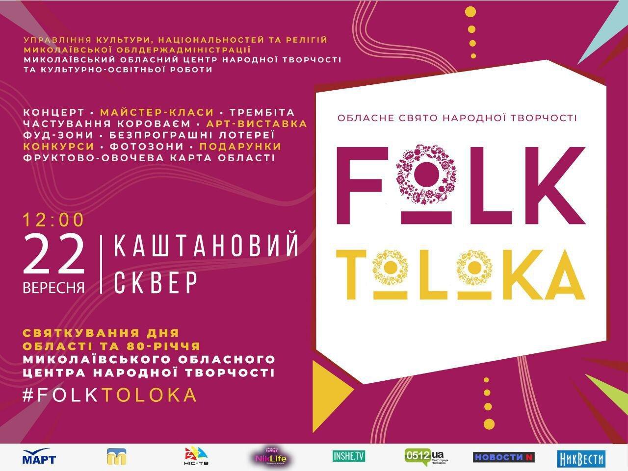 22 сентября, в Каштановом сквере впервые в Николаеве состоится праздник «Folk-toloka 2018», приуроченный ко Дню области.