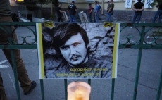 Возле офиса лидера движения Украинский выбор Виктора Медведчука в Киеве прошла художественная акция под названием Стус ждет - Медведчук под арест.