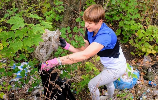 Президент Эстонии Керсти Кальюлайд во Всемирный день уборки приняла участие в очищении городского парка в городе Днепр.