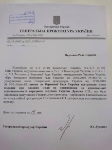 Генеральный прокурор Украины Юрий Луценко повторно внес в Верховную Раду представления о снятии неприкосновенности и на привлечение к уголовной ответственности депутатов от Оппозиционного блока Александра Вилкула, Дмитрия Колесникова и Сергея Дунаева.
