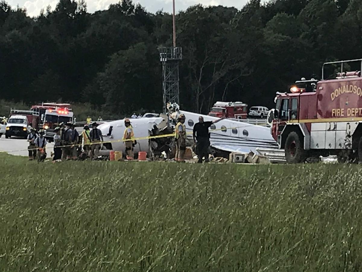 Самолет раскололся на две части в аэропорту Гринвилл-Даунтаун в Южной Каролине на юго-востоке США накануне, два человека погибли.
