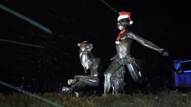 В четверг, 9 января, в Николаеве неизвестные сняли со скульптуры «Маугли» возле зоопарка новогоднюю шапку.